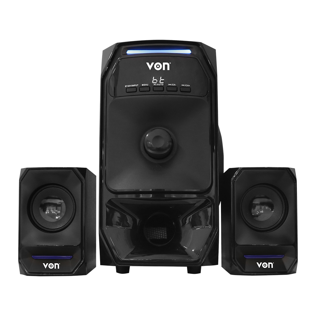 Von Hotpoint VES065ET Subwoofer: A powerful audio accessory designed to enhance your sound system's bass performance.Introducing the Von 2.1CH VES0652ES 65W Subwoofer, a premium audio system designed to elevate your listening experience to new heights. Crafted to deliver powerful, crystal-clear sound and exceptional functionality, this subwoofer embraces cutting-edge technology and innovative features to provide an immersive and versatile audio solution for your home entertainment needs. At the heart of the Von 2.1CH VES0652ES Subwoofer lies its commanding 65W RMS audio output, showcasing the system's ability to deliver robust and high-fidelity sound. Whether you're listening to music, watching movies, or gaming, this subwoofer ensures that every auditory nuance is communicated with precision, creating an immersive sonic environment within your living space. The 2.1Ch speaker configuration further enhances the audio experience, leveraging the distinct channels to produce a rich, multidimensional soundstage. This setup results in a dynamic and balanced audio output that envelops the listener, providing an engaging and immersive listening experience that's perfect for music, movies, and gaming. Sound reinforcement is taken to the next level with bass extreme technology, bringing deep, resonant bass that enriches the audio experience. This feature ensures that you not only hear your favorite music and movies but can truly feel the impact of low-frequency sounds, adding realism and depth to your listening experience. The Von 2.1CH VES0652ES Subwoofer is equipped with an LED display and a remote control, allowing for effortless navigation and control. The intuitive display provides clear visual feedback, enabling easy access to settings and modes, while the remote control ensures seamless operation from the comfort of your favorite listening spot. Connectivity is a key strength of this subwoofer, featuring Bluetooth capability that allows you to wirelessly pair your smartphone, tablet, or TV, offering superior audio output directly from your preferred devices. This wireless connectivity provides the freedom to enjoy high-quality audio without the constraints of physical cables, delivering convenience and flexibility to your entertainment setup. Furthermore, the integrated FM tuner enables you to tune in to your favorite radio stations, expanding your listening options and keeping you connected to the latest music, news, and entertainment. Whether you prefer local broadcasts or national programming, the FM tuner adds a new dimension of versatility to your audio experience. In addition to wireless and radio connectivity, the Von 2.1CH VES0652ES Subwoofer features USB and SD card support, allowing you to enjoy your personal music collection with ease. Simply plug in your USB drive or SD card to access and play your favorite tracks, giving you complete control over your audio library and enabling a customized and curated listening experience within your own home. In summary, the Von 2.1CH VES0652ES 65W Subwoofer represents a pinnacle of audio excellence, offering a powerful and versatile solution for music, movies, and entertainment. With its high-fidelity sound output, 2.1Ch speaker configuration, bass extreme technology, intuitive LED display with remote control, seamless Bluetooth connectivity, FM tuner, and USB/SD card support, this subwoofer seamlessly integrates into your home entertainment setup and ensures an immersive and enjoyable audio experience. Whether you're hosting a movie night, having a jam session, or simply relaxing with your favorite tunes, the Von 2.1CH VES0652ES Subwoofer is your gateway to premium, high-fidelity sound.